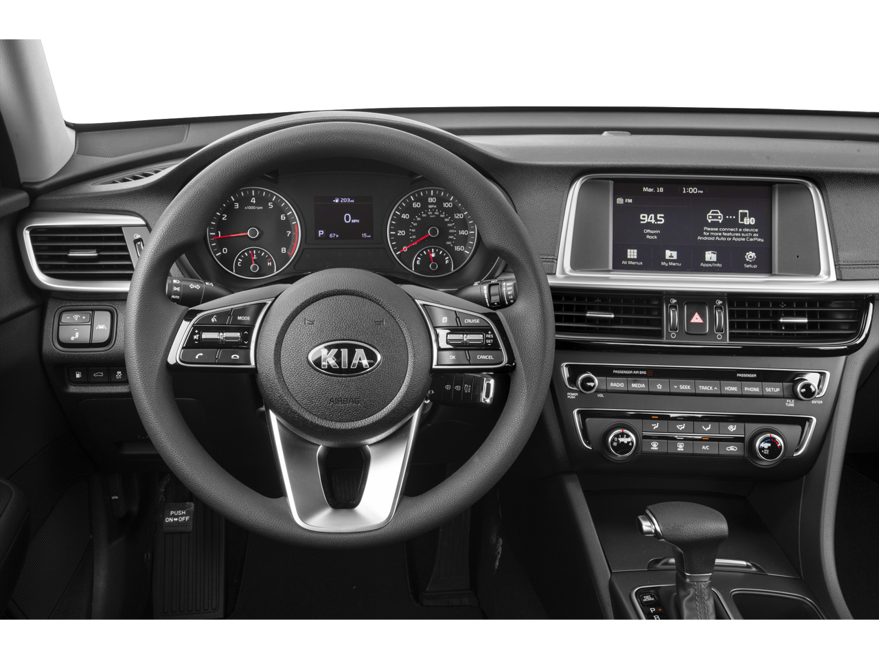 Treat yourself to our One OWner 2019 Kia Optima LX Sedan that's well-equipped and stylish in Snow White Pearl. Powered by a 2.4 Liter 4 Cylinder offering 185hp tethered to a 6 Speed Automatic transmission with a Sportmatic shifter. This Front Wheel Drive sedan earns nearly 36mpg on the road while being a real performer. Our impressive Optima is immediately recognized by its distinctive and exclusive gloss black Tiger nose grille. Power mirrors with LED turn-signal indicators, 16-inch Silver Finish alloy wheels, and solar control glass all complement the sleek exterior.Climb inside our LX and be amazed by the amenities that await. As you settle into the cozy cloth seating with CleanTex, enjoy convenient features such as Bluetooth®, UVO with a vibrant 7-inch touchscreen display, a fabulous 6-speaker sound system with Android Auto and Apple CarPlay, keyless entry, and a rear camera display.Safety is a priority for our Kia engineer team. Blind-spot detection, Lane Change Assist, and Rear Cross-Traffic Alert enhance the well-being of your vehicle and those on the road with you! The Optima LX sedan is a prime choice for your driving needs. Save this Page and Call for Availability. We Know You Will Enjoy Your Test Drive Towards Ownership!