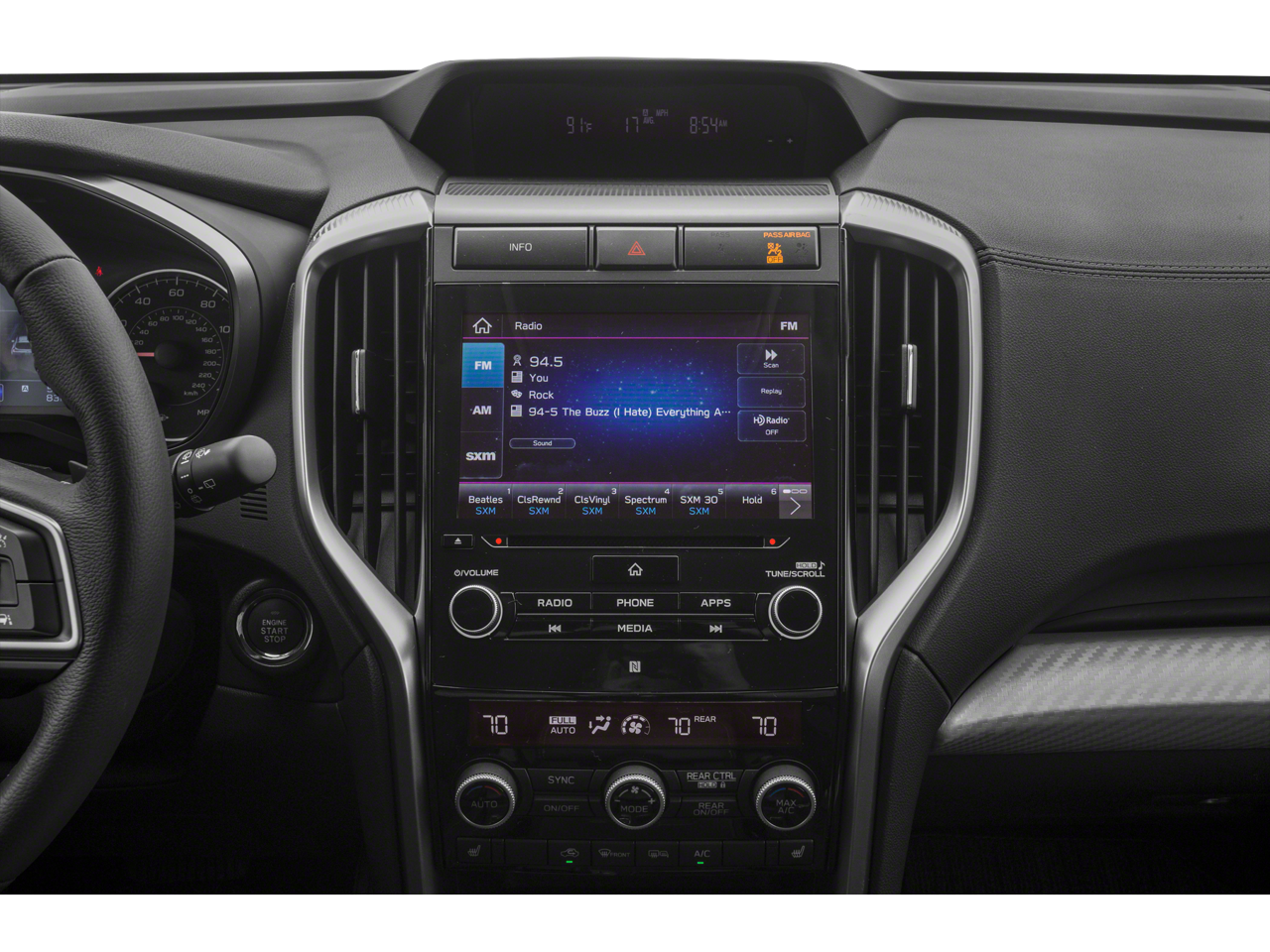 - Radio: Subaru STARLINK 8.0" Multimedia Plus System -inc: AM/FM stereo HD Radio w/single disc CD player, MP3/WMA/CRR/RW file capability, multi-touch gesture high resolution display screen, voice activated controls, Bluetooth® audio streaming and hands-free phone connectivity (applicable w/compatible cell phone), Bluetooth® hands-free SMS text messaging connectivity (applicable w/compatible cell phone), Near Field Communication (NFC), iPod control capability, SiriusXM All Access radio (4 months free trial/subscription required after), SiriusXM Travel Link (4 months free trial/subscription required after), smartphone integration for Aha, Android Auto, CarPlay, Pandora and STARLINK cloud applications, USB and Over The Air (OTA) audio system update, steering wheel controls for audio and Bluetooth®, 6 speakers, 3.5mm auxiliary input jack and front and rear dual USB ports