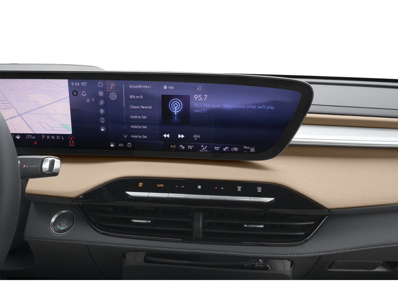 - Infotainment Center, customizable ultrawide 30" diagonal screen with Google built-in. Provides navigation capability, connected apps, personalized profiles for each driver's settings, Natural Voice Recognition and Phone Integration for Wireless Apple CarPlay/Wireless Android Auto for compatible phones