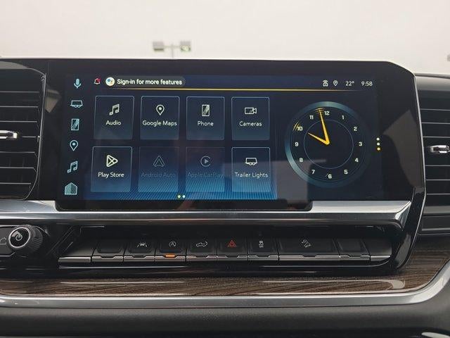 - Audio system, Chevrolet Infotainment 3 Premium system with Google built-in compatibility (select service plan required, terms and limitations apply) including navigation capability, 13.4" diagonal HD color touchscreen, includes multi-touch display, AM/FM stereo, Bluetooth® streaming audio for music and most phones; featuring Wireless Apple CarPlay and Wireless Android Auto capability for compatible phones, advanced voice recognition, in-vehicle apps, personalized profiles for infotainment and vehicle settings
